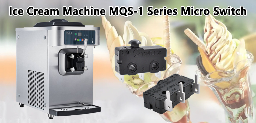 The MQS-1 series micro switch can be installed at the extrusion outlet of the ice cream machine to monitor the extrusion process of ice cream. When the ice cream extrusion reaches a specific position, the MQS-1 series micro switch may be triggered to control the stop of the extrusion device or other related operations. The ice cream machinery has a mixing and stirring function, and the MQS-1 series micro switches can be installed at key positions of the stirring device. In this way, when the mixing reaches the required state or time, the MQS-1 series micro switch can trigger the corresponding operation.
